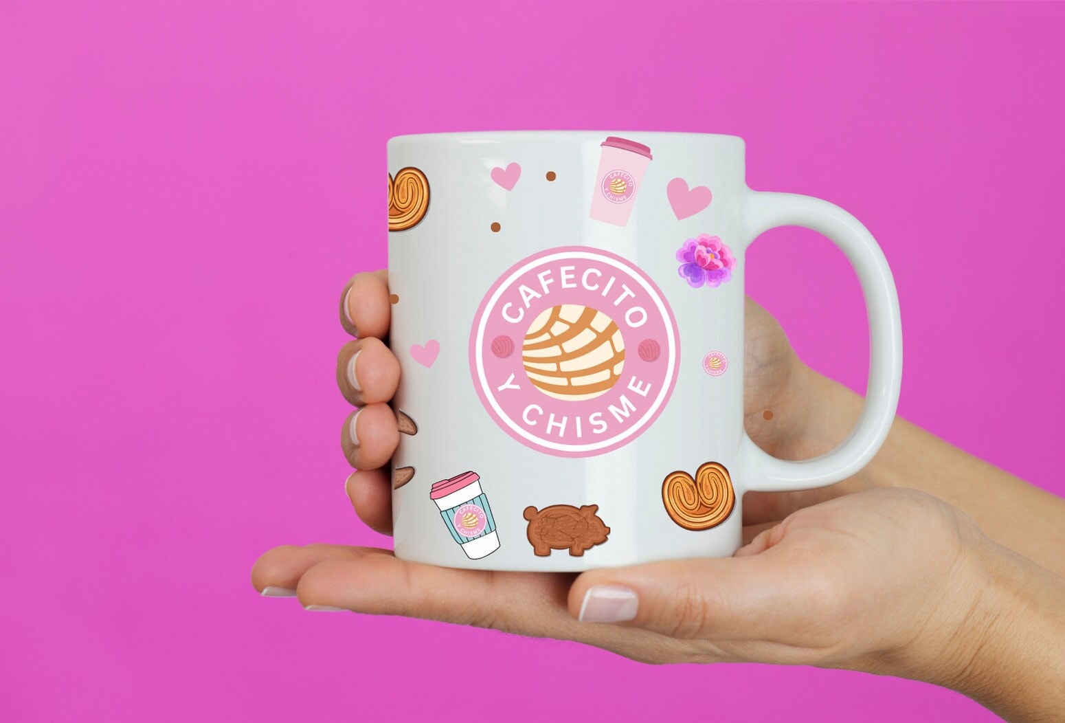 Experience the unique combination of coffee culture and meaningful conversations with our "Cafecito y Chisme" mug with a captivating Mexican concha bread design. Made from premium ceramic, this mug is microwave and dishwasher-safe, making it the perfect addition to your morning routine or gatherings with friends and family. It also makes a thoughtful gift for coffee lovers and anyone who appreciates cultural heritage and heartwarming connections.