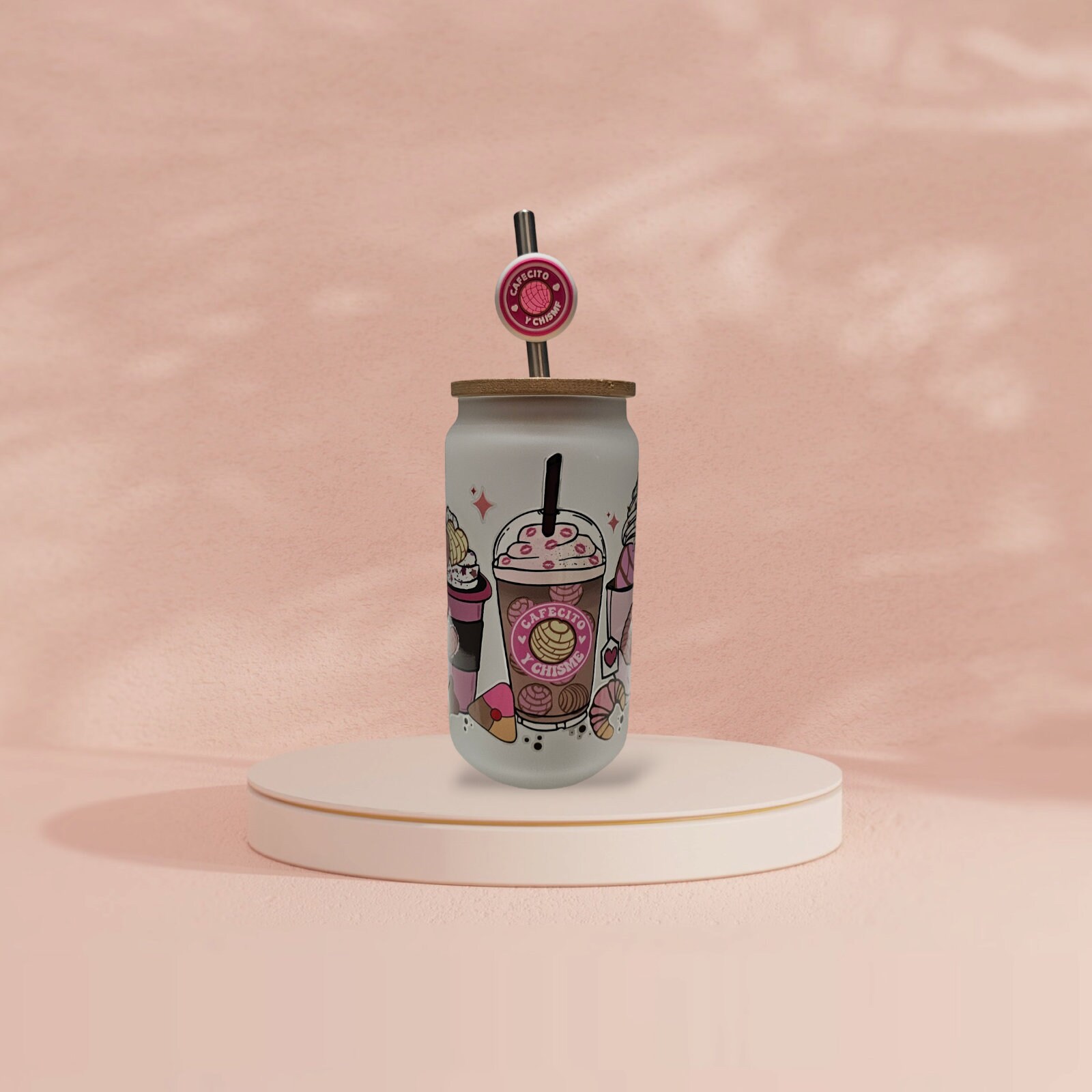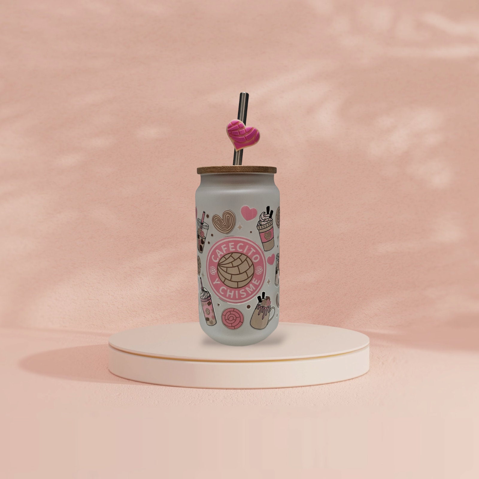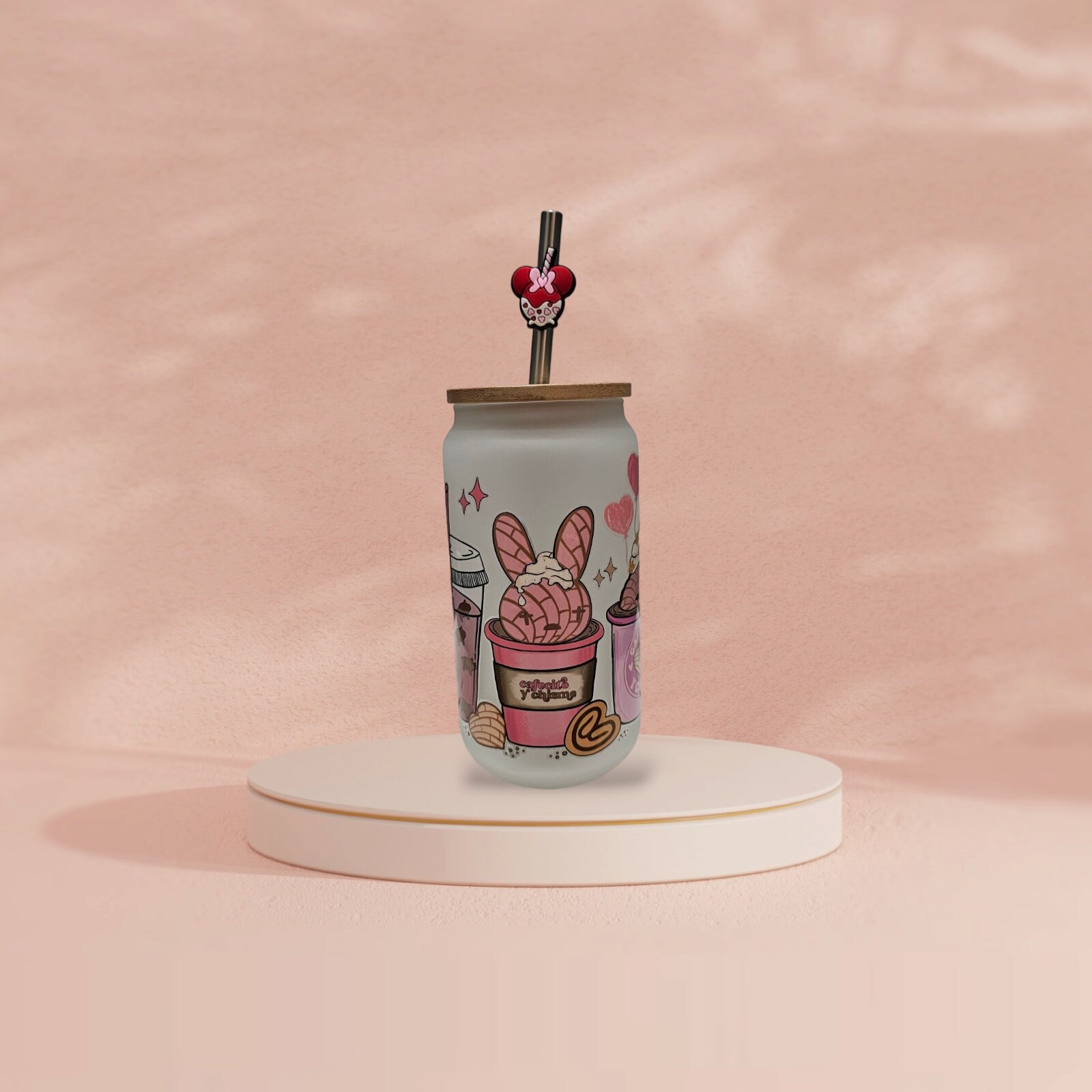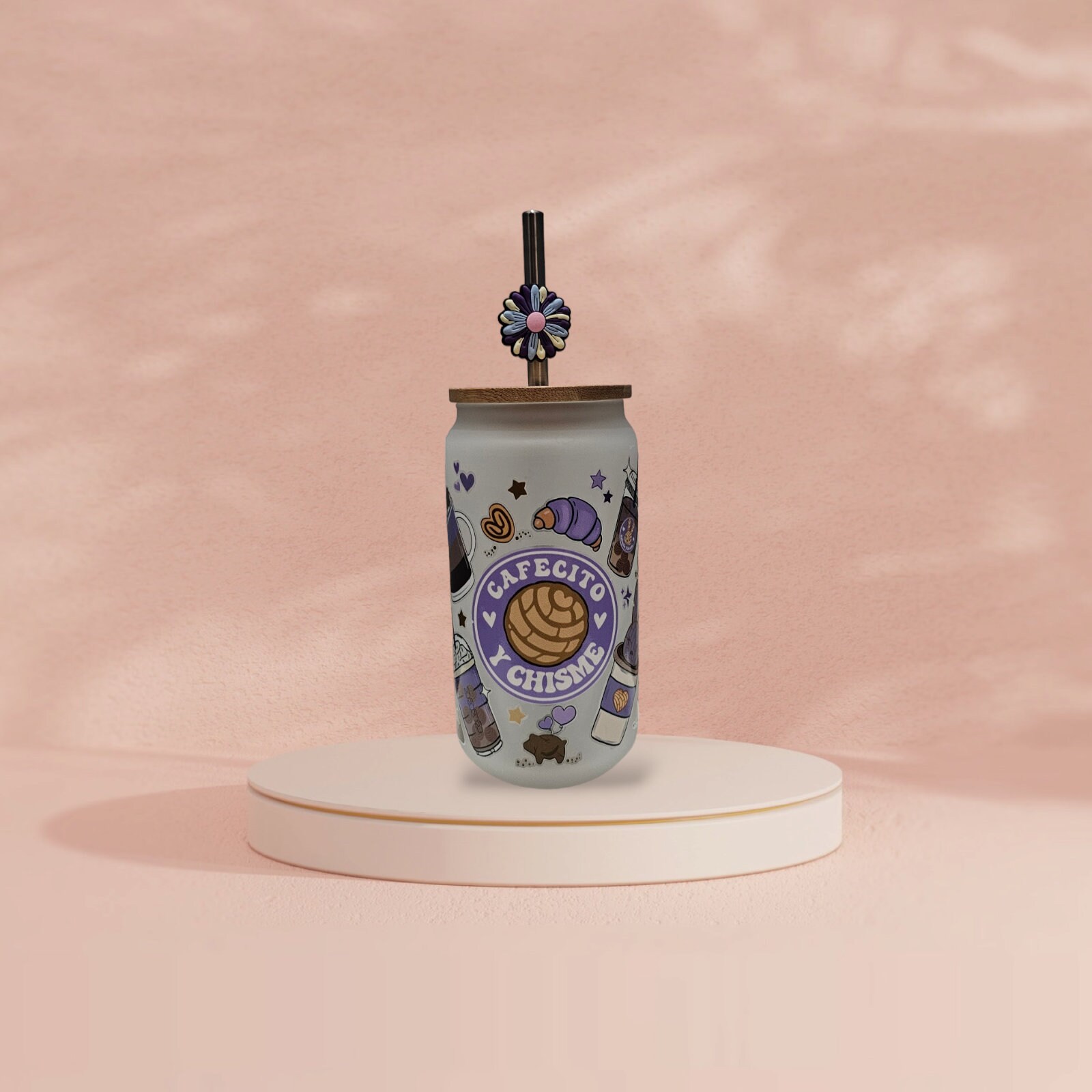This adorable 16 oz. Glass cup comes with a bamboo lid and glass straw, making it the perfect accessory for enjoying your favorite beverage in style. Its modern and compact design makes it a great choice for those on the go. Made with high-quality UV DTF that is waterproof and scratch-proof, this cup is built to last, even with daily use and washing. It's the perfect choice for everyday use.