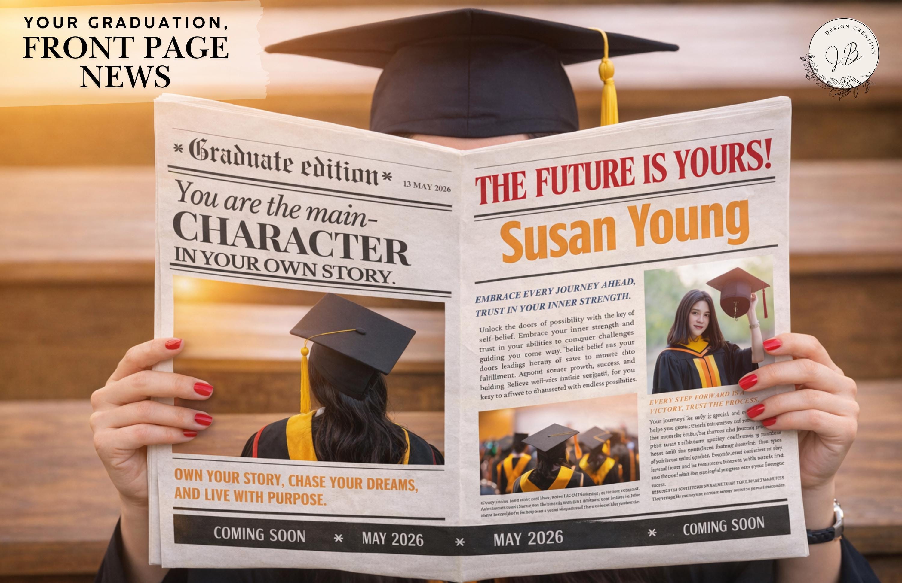 Whether you’re celebrating your own journey or surprising a graduate, this custom newspaper is a one-of-a-kind keepsake they’ll cherish forever.